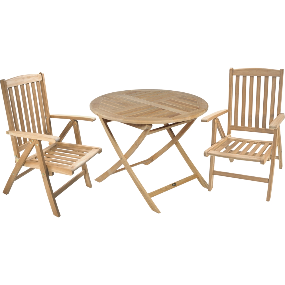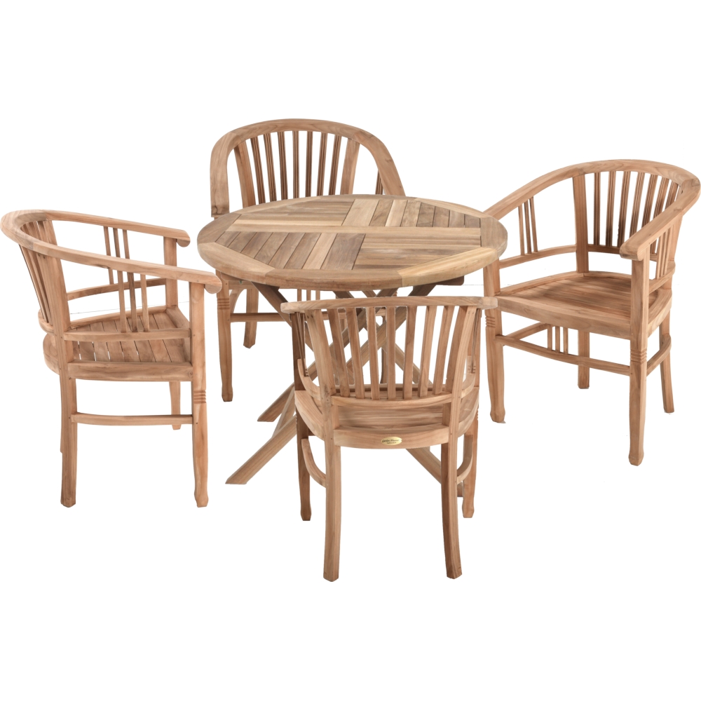 Der runde Klapptisch SOLO zeichnet sich durch seine praktische Klappfunktion und seine robuste Konstruktion aus B-Grade Teakholz aus.
