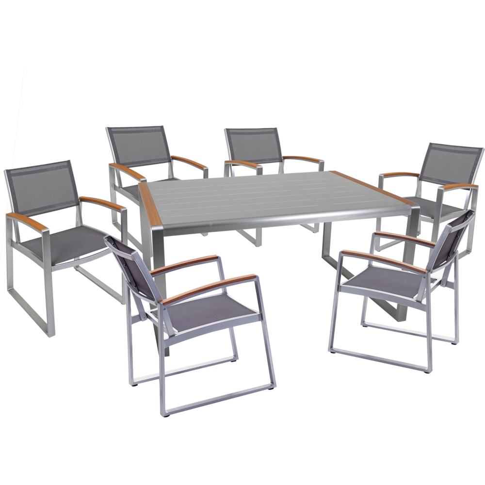 Die Gruppe AVA 7tlg. ist eine moderne und elegante Lösung, um Ihren Außenbereich stilvoll und komfortabel zu gestalten. Dieses Set besteht aus einem Tisch und sechs Stühlen, die sorgfältig gestaltet wurden, um Ihren Outdoor-Raum zu bereichern.