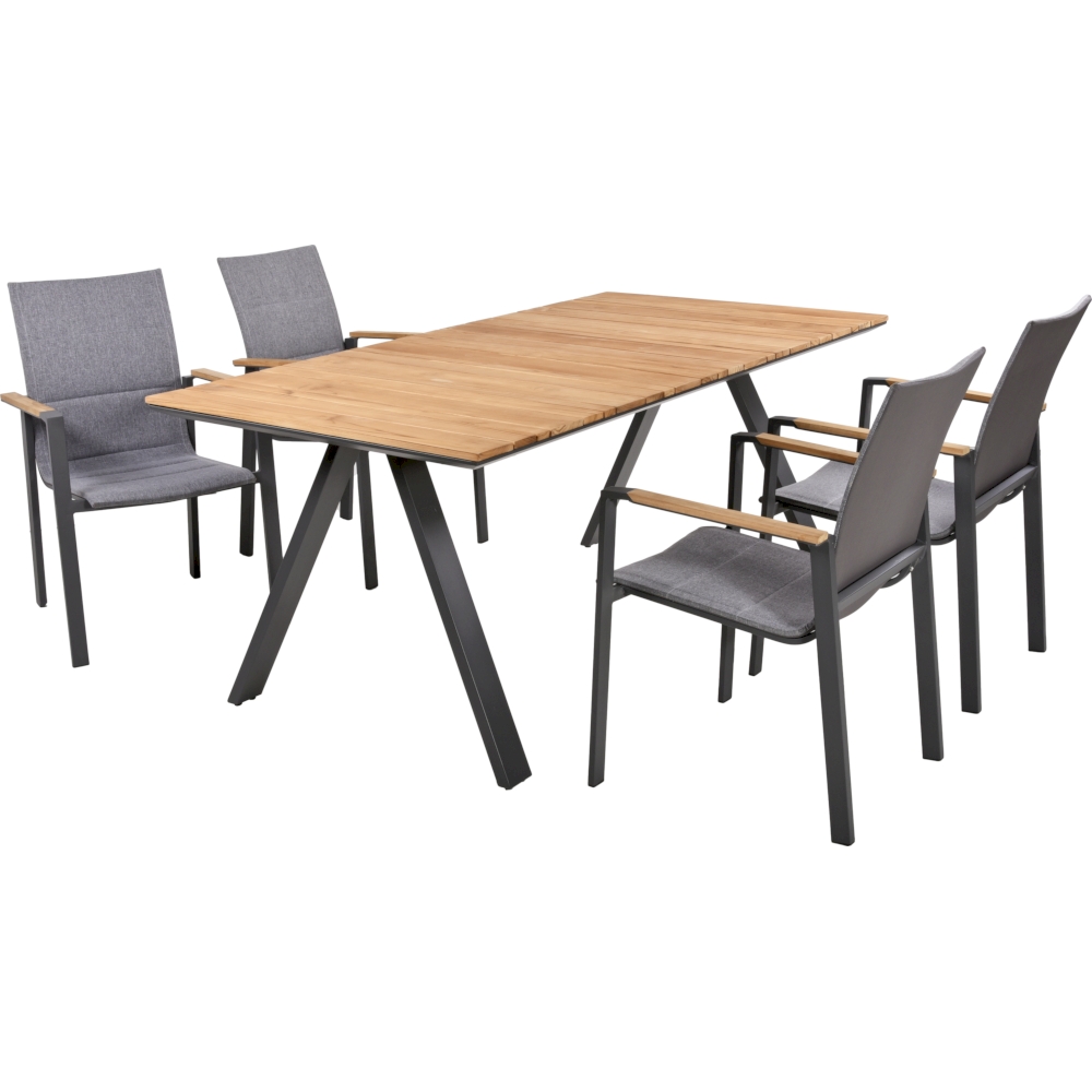 Aluminium / Teak FSC 100%, 1 × Tisch 305399 | 4 × Stapelstuhl 305398