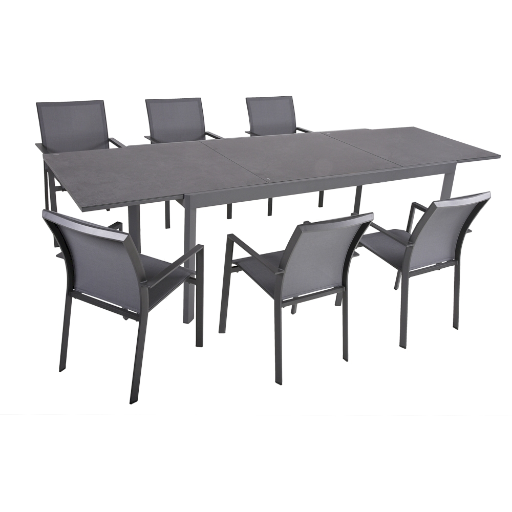 1 × Ausziehtisch NEREA 305390 | 6 × Stapelstuhl 305396