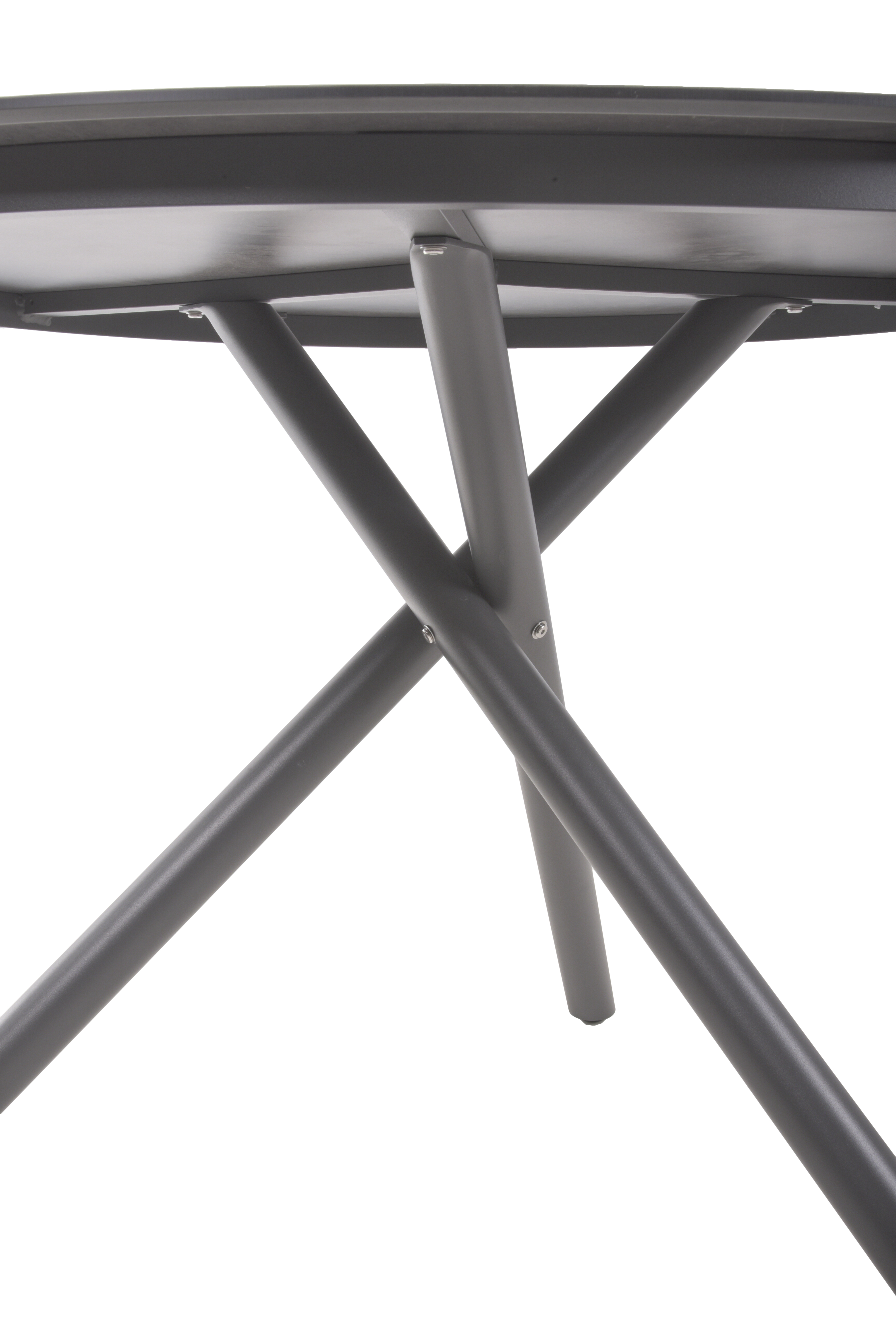Der runde Tisch SOPHIA ist aus pulverbeschichtetem Aluminium in der Farbe pfefferschwarz (Industrial) gefertigt und verfügt über eine strapazierfähige Kunststoff HPL-Tischplatte, die langlebig und leicht zu reinigen ist.