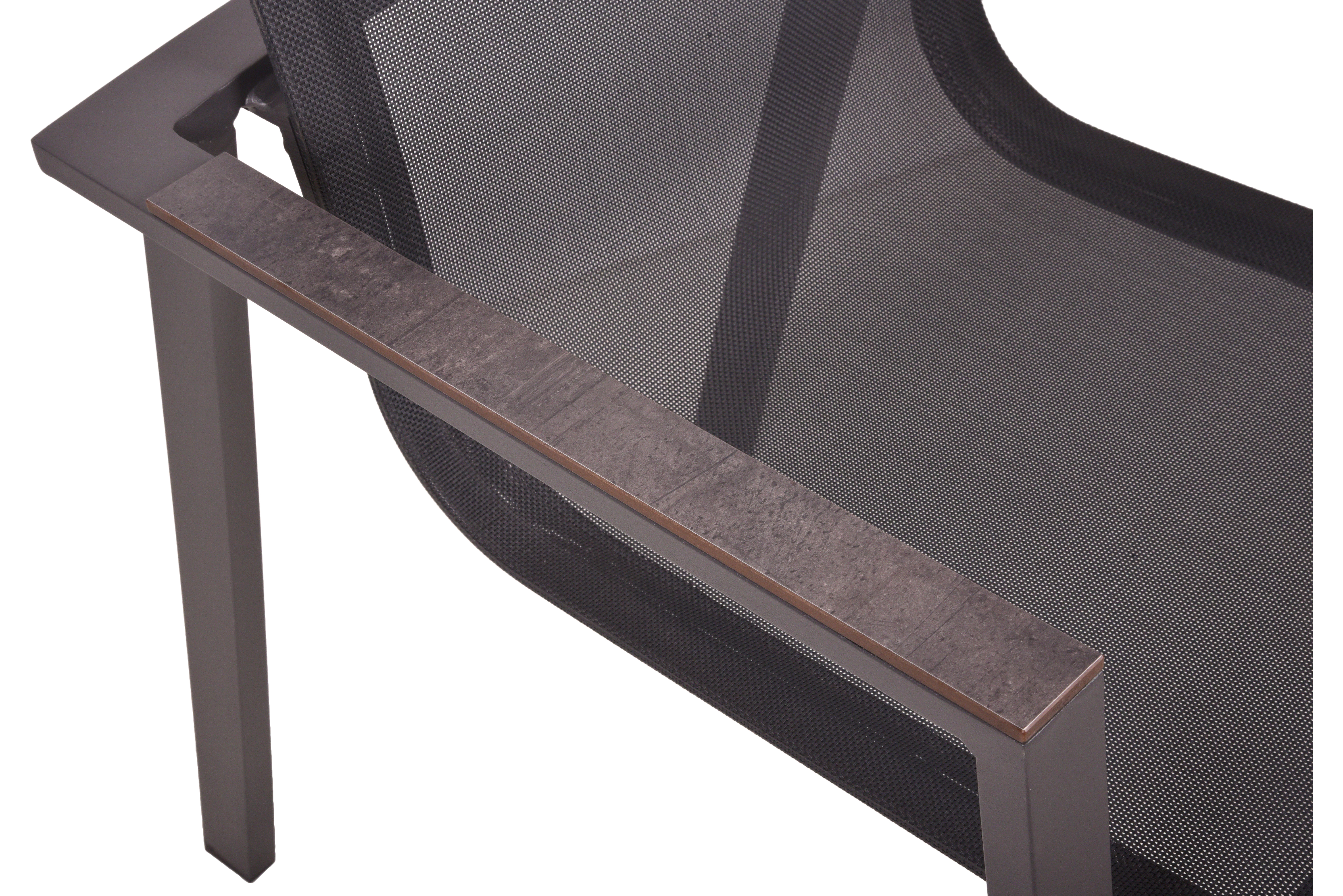 Die Stapelstühle SOPHIA sind ebenfalls aus pfefferschwarzem (Industrial) Aluminium gefertigt und mit einem langlebigen Kunststoffgewebe 2x2 in pfefferschwarz (Industrial) bezogen.