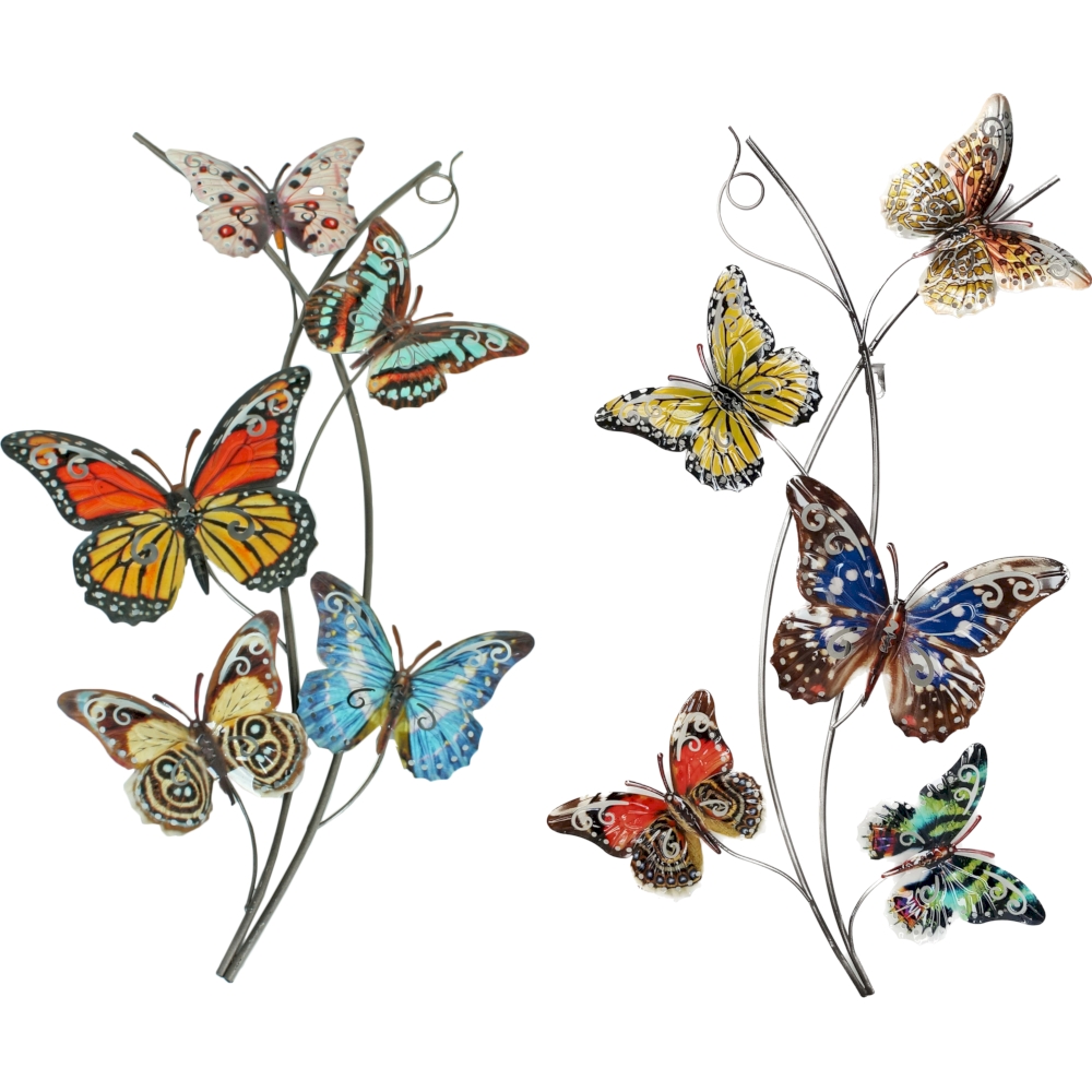 Unser Wanddekor "SCHMETTERLINGE" aus Metall ist eine bezaubernde und vielseitige Ergänzung für Ihre Inneneinrichtung. Dieses Dekor zeigt farbenfrohe Schmetterlingsmotive, die jedem Raum eine frische und lebhafte Note verleihen. Das Set wird in 2 verschiedenen Sorten geliefert, was Ihnen die Möglichkeit gibt, Ihre Wandgestaltung individuell zu gestalten.
