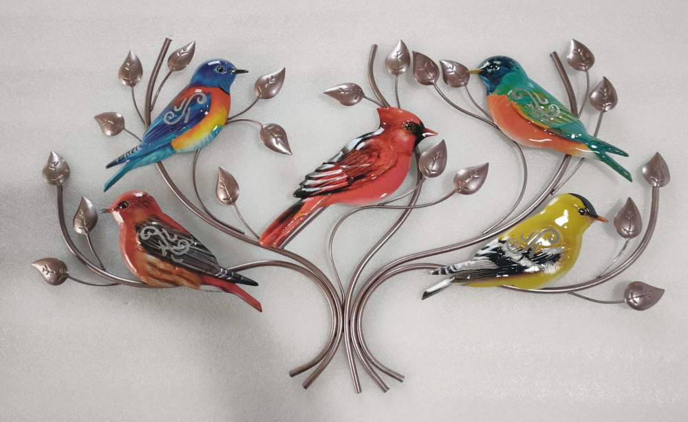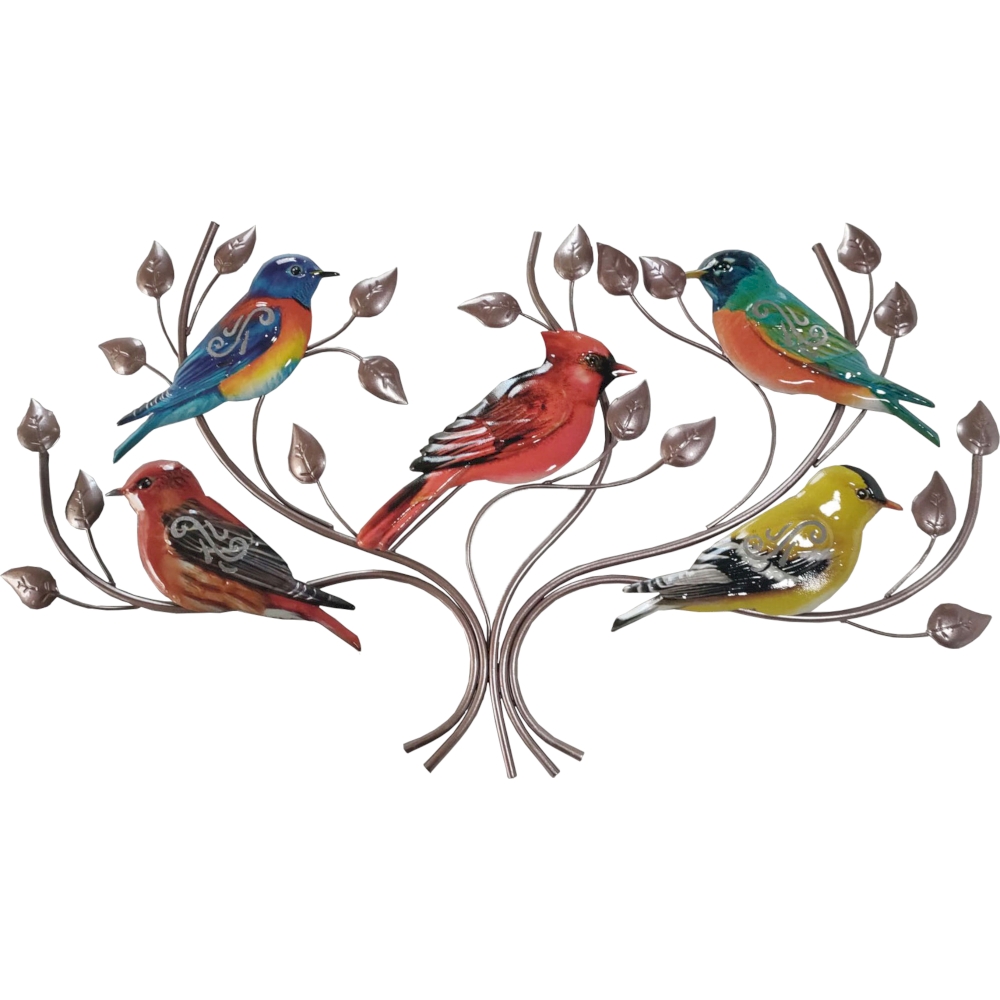 Unser Wanddekor "VÖGEL auf Ästen" aus Metall ist eine lebendige und farbenfrohe Ergänzung für Ihr Zuhause. Die filigran gestalteten Vögel in den Farben Blau, Grün, Rot und Gelb sind auf detailreichen Ästen angeordnet und verleihen Ihren Wänden eine frische und lebhafte Atmosphäre.