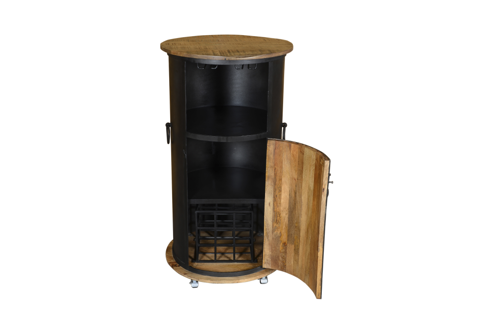 Durch sein stilvolles Design im Industrial – Styl wird die Bar zu einem echten Highlight in Ihrer Wohnung. Mit den praktischen Rollen ist der Barschrank jederzeit beweglich und passt sich ideal in seine Umgebung an. Artikel wird bereits montiert geliefert.